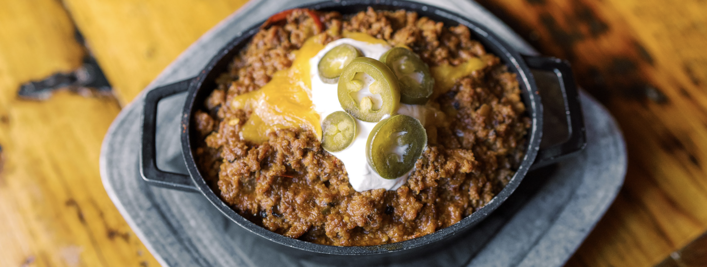 - Cumberland Chili: hearty, housemade beef chili served over jasmine rice, topped with shredded cheddar, a dollop of creamy sour cream and pickled jalapenos.