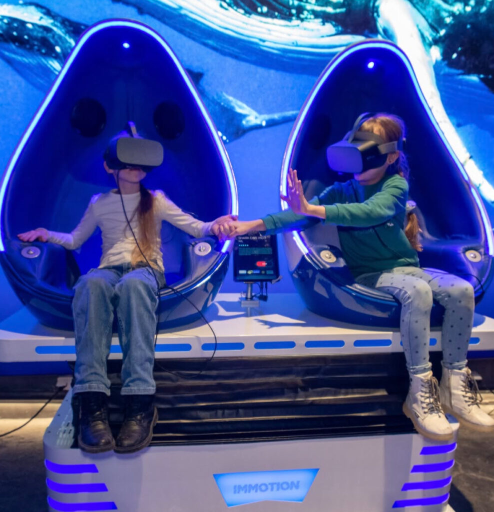 Immersive 360-degree views of spectacular sharks and wondrous whales are now a reality at the Aquarium. Undersea Explorer, the new virtual reality experience, is now open for riders. Choose your ocean adventure and step aboard to enjoy the thrill of the ocean as live-action films are synced with motion-platform seating. April 2025.