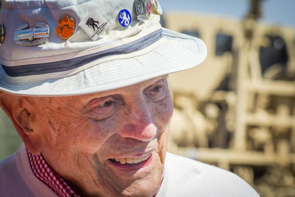 In 2006, at the age of 88, Skardon became the only survivor to walk in the annual Bataan Memorial Death March at White Sands Missile Range, New Mexico. He walked more than eight miles and returned to walk 12 more times, the last when he was 101. He came to consider it a pilgrimage, and his duty to walk in honor of his brothers-in-arms who did not return from the war. When the COVID pandemic forced the cancelation of the New Mexico event in 2020, a team of students, veterans, alumni and friends created the Clemson 8 Challenge to honor eight Clemson alumni who survived the Bataan Death March and carry on Skardon’s mission of honoring those who gave the ultimate sacrifice. Skardon, then 103, walked more than three miles for the event, which raises money for ROTC scholarships.