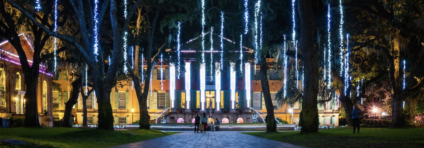 The sixth annual Cougar Night Lights holiday light show kicks off in historic Cistern Yard on Wednesday, Nov. 30, 2022, with a special showing for College of Charleston students. Starting at 5 p.m., students can enjoy light refreshments and activities. President Andrew Hsu will give remarks at 6 p.m. followed by the light show.