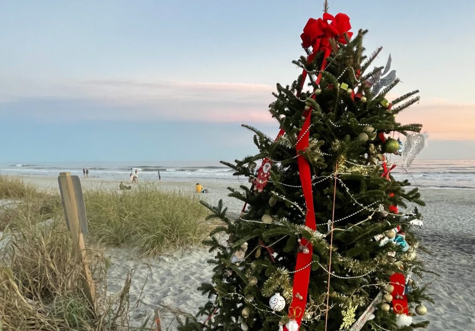 Ghosts of Christmas past stroll down Tradd while a Christmas tree lights up the starry Folly night