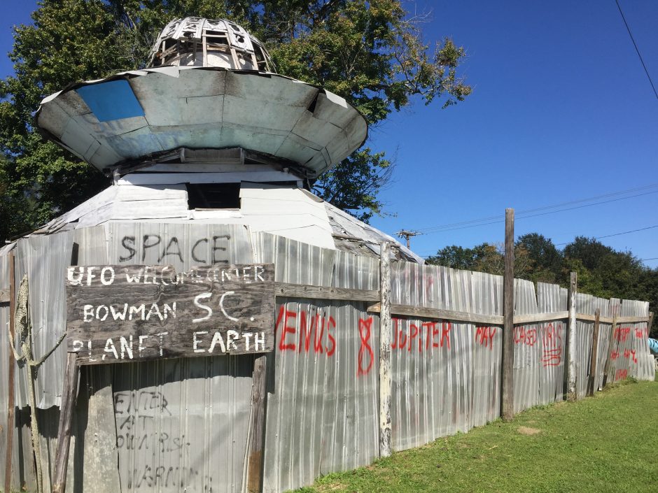 Update: We just learned that the UFO Visitor Center in Bowman, SC was destroyed in a fire – Click HERE for story. We will always have our memories of this odd but memorable state attraction.