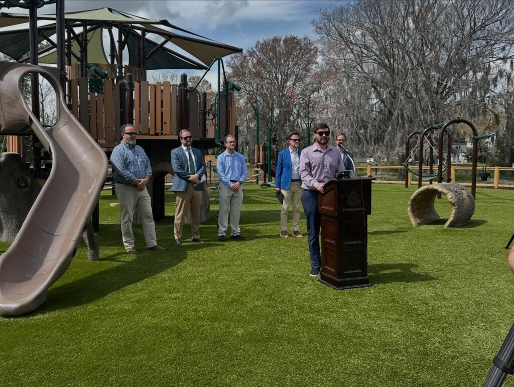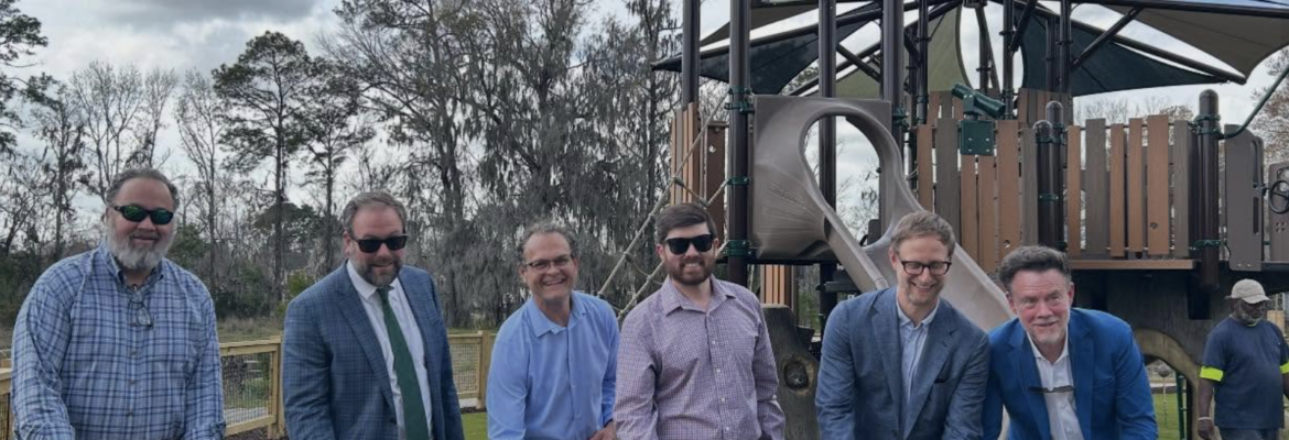 The City of Charleston today celebrated the completion of Bridgepoint Ecological Park and Playground with a ribbon-cutting ceremony in the Shadowmoss neighborhood of West Ashley. The new green space and playground will also help reduce flooding in the surrounding community.