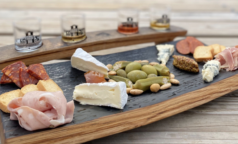 Enjoy Flights + Bites from anywhere on the distillery grounds, available Monday through Friday. Flights: $10-$12; Boards: $12.