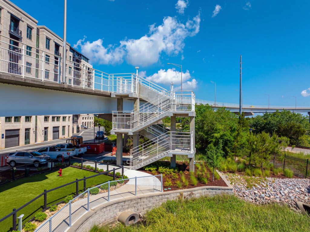 The unveiling event – which was attended by District Four Councilmember Robert Mitchell, Woodfield’s development partners, and Morrison Yard residents – marks the official opening of the new staircase that provides direct pedestrian access from Morrison Yard to Charleston’s iconic Arthur Ravenel Jr. Bridge. The new bridge access is designed to foster more connectivity between downtown Charleston, Mount Pleasant, and the surrounding area.