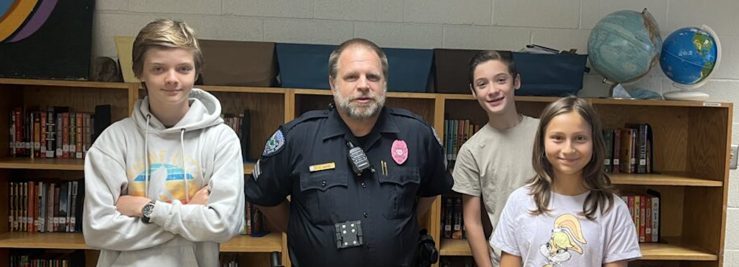 As part of the pledge, Sgt. Ware read the pledge on the school’s morning news broadcast. He returned later in the day and spoke to 7th and 8th graders about the impact of gun violence. Great job sir!