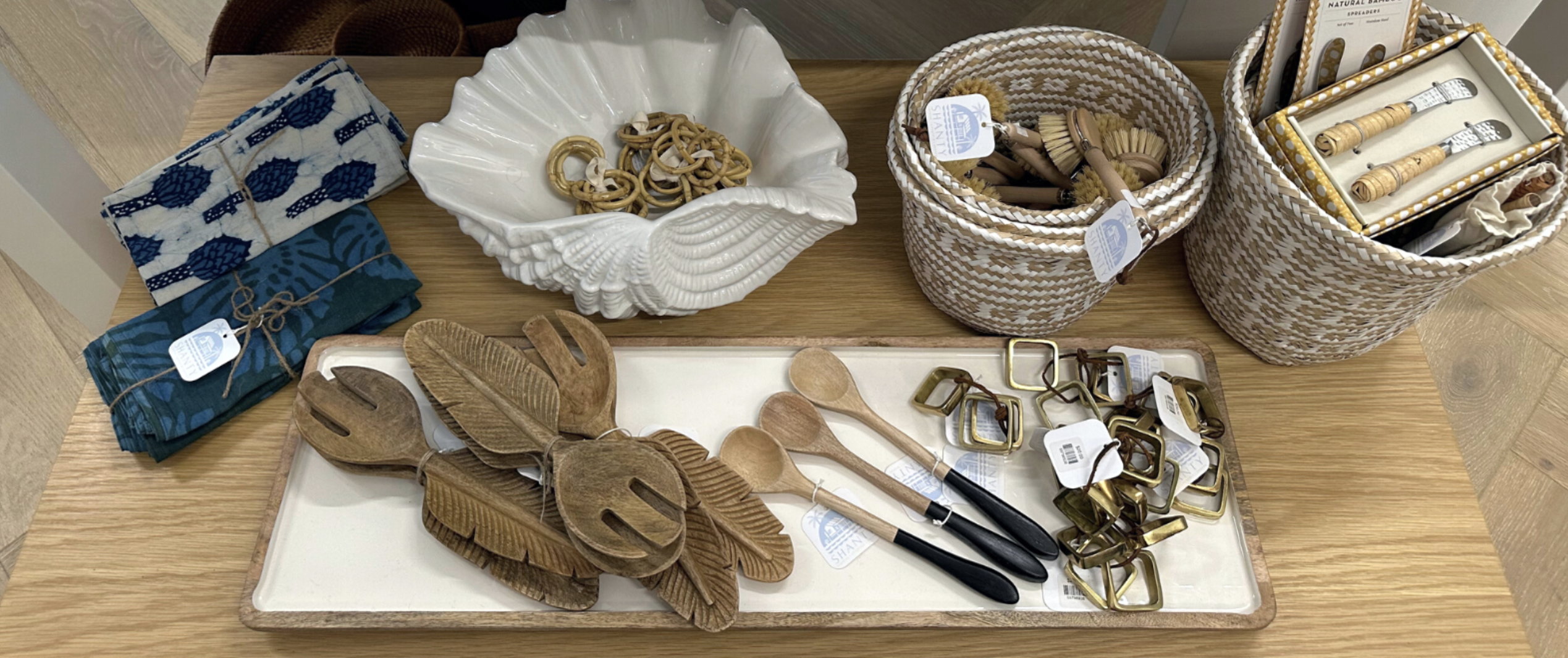 Shanty Shoppe is a retail concept offering coastal-themed lifestyle items and decor for kitchen and dining, outdoor entertaining, lighting, bags and bling, and more. An accompanying design studio has opened with the retail store. Brittany and Stephanie keep the local community in mind by including local art pieces in their collections, having events that assist local teachers, holding collaborative small business block parties, and other fun initiatives.