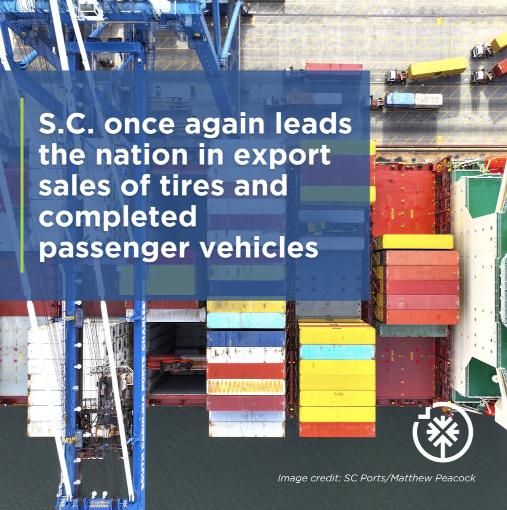 “South Carolina once again led the country in the export of passenger vehicles and tires, reflecting the strength of our manufacturing industry. Reaching the highest export value in seven years is the result of a skilled workforce and the confidence global markets place in products made in our state.”