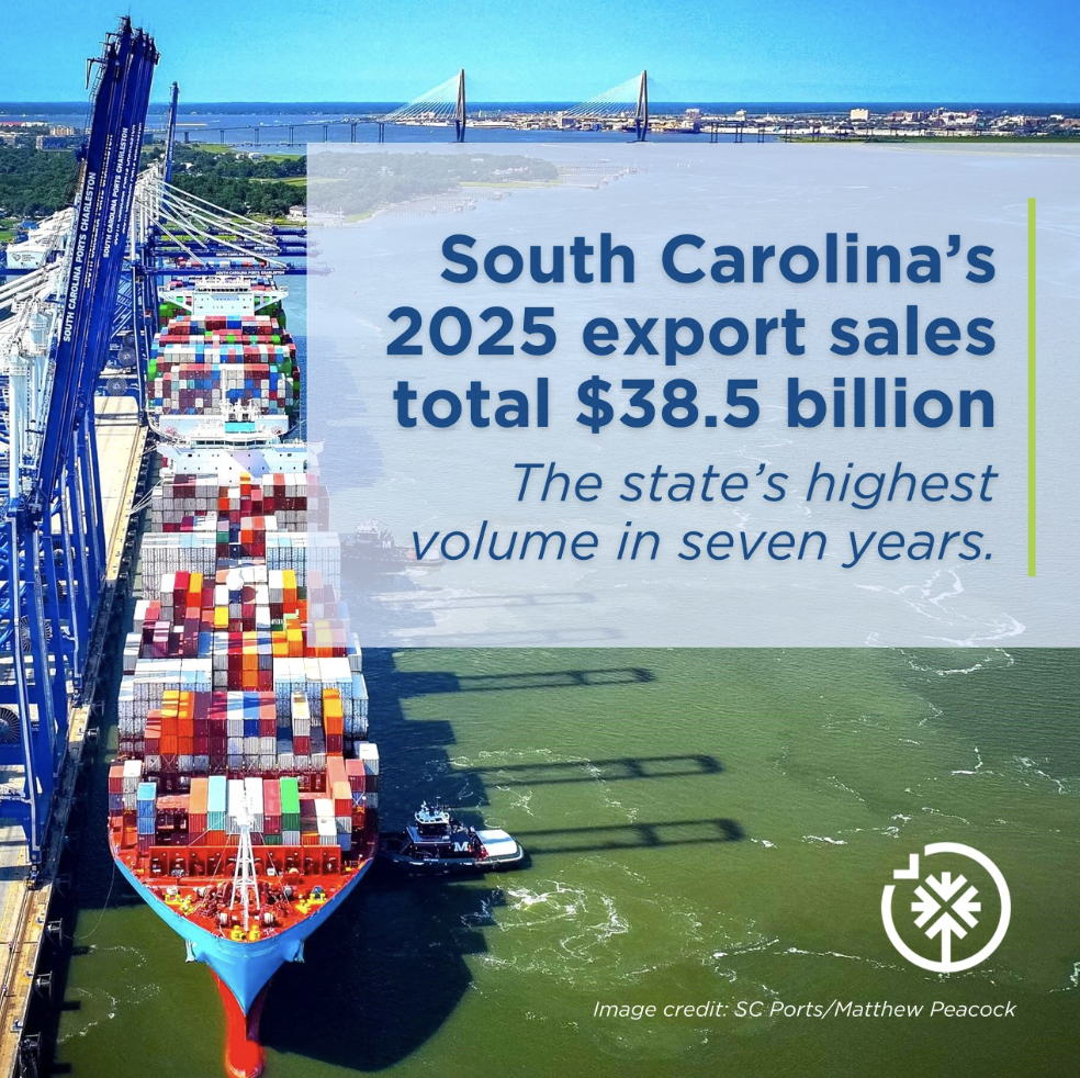 South Carolina export sales reach $38.5 billion in 2025, marking seven-year high