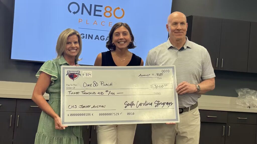 One80 Place is an organization in Charleston committed to ending and preventing homelessness. The donation from the Stingrays and the Charleston International Airport will benefit all of One80 Place’s services including housing, shelter, clinics, legal services and community kitchens.
