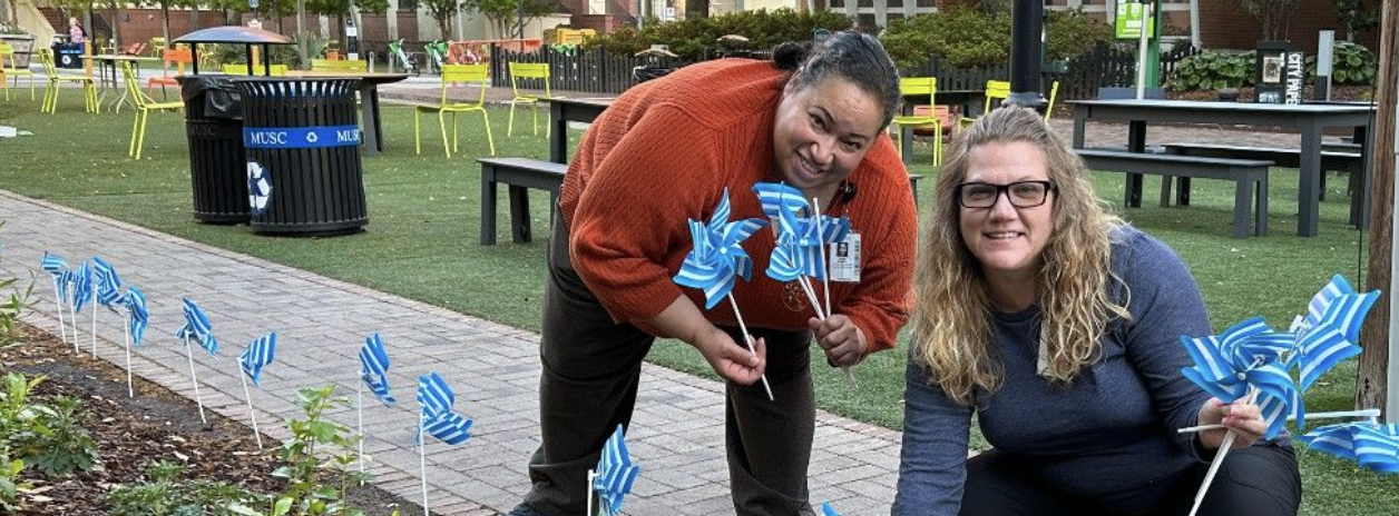 Sharing Hope SC team members gathered with MUSC’s Transplant Center team to organize the pinwheel installation. As South Carolina’s only full organ transplant center, MUSC Transplant Center works closely with SHSC to facilitate the gift of life. Our teams work in partnership to recover transplantable organs from South Carolinians to South Carolinians.